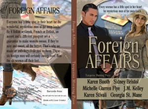 Had to share the good news…I’m finally available in print! Yay! Foreign Affairs, the anthology with my short story “Agapi Mou”, is now available in print, so if you’re one of those who loves to hold a book in your hands…well, you can finally hold one with MY name on the front cover in your hands. Here’s what the cover looks like: