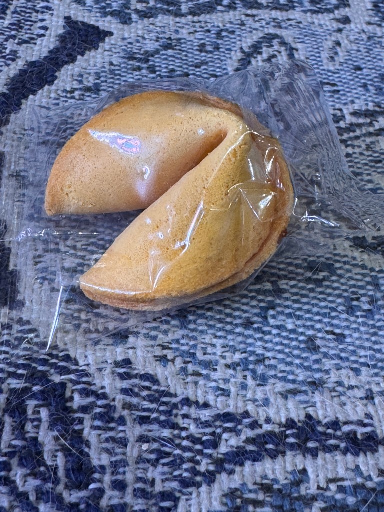 10:40 a.m. One of the past years (can’t remember which) I wrote fortune cookie poetry. I cracked open a fortune cookie every morning and wrote a poem based on the fortune inside. Thought I’d try that live. Here goes: