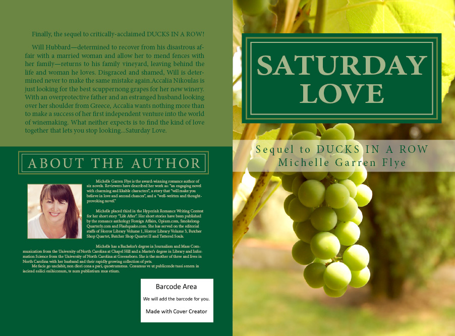 SATURDAY LOVE is now out there. Feel free to give it some love. And if you’re worried about reading the sequel without reading the first book, DUCKS IN A ROW is free for the Kindle today. Do me a favor and go check it out, then let your friends know, too.