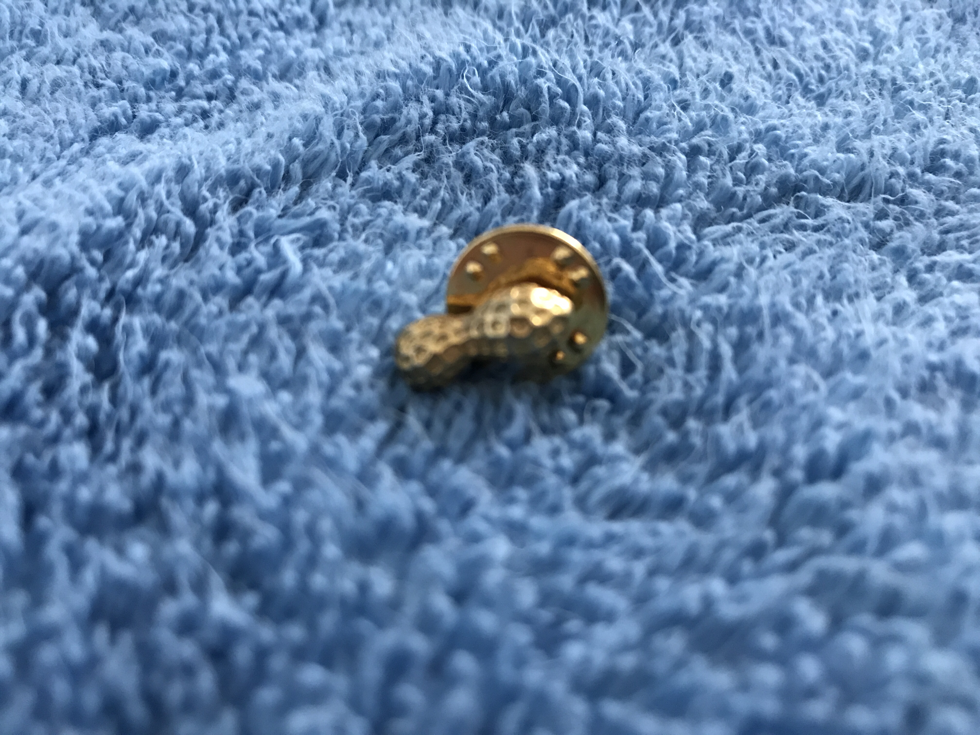 The peanut lapel pin my mother received for campaigning for Jimmy Carter. I keep it to remind myself what being Democrat is all about: Persevering for the little guy.